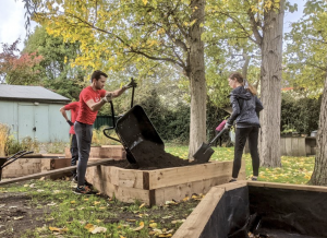 The funding will help us rebuild the raised beds outside the Hut, adding sensory and therapeutic planting as well as new seating. With the help of the amazing park and Community Garden volunteers, Stephen and Bill from Urban Canopy have have cleared the space of dilapidated beds and nearly finished building new raised beds with integrated seating. GoodGym visited to help fill the beds with soil.
